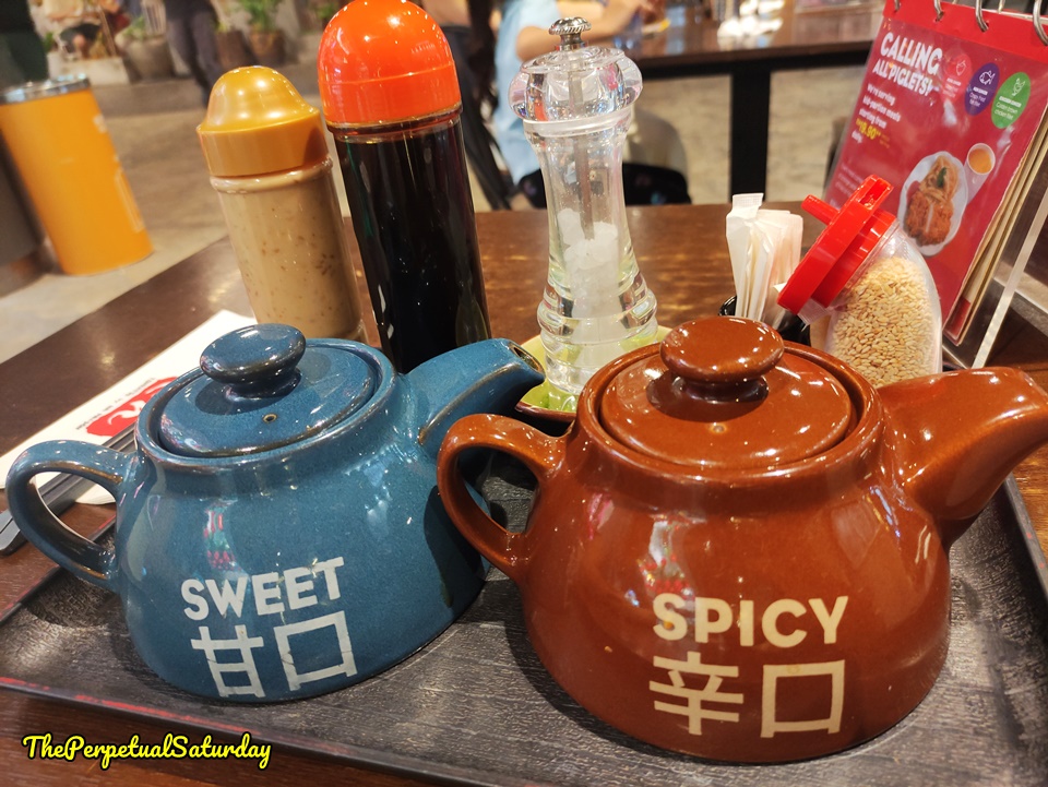 A tray with a variety of condiments will arrive at the table shortly after you are seated. Some options include Kewpie roasted sesame dressing, soy sauce, and tonkatsu sauce in the two teapots. There is no toilet inside Tonkatsu by Ma Maison, but luckily the Sunway 163 mall washrooms are located right next door. Exit the restaurant, turn right and go down the corridor that is next to the escalators.
